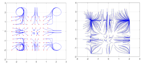 貴大新聞網(wǎng)訊(數(shù)學(xué)與統(tǒng)計(jì)學(xué)院)近日,國(guó)家天元數(shù)學(xué)西南中心貴州基地/貴州省數(shù)據(jù)驅(qū)動(dòng)建模學(xué)習(xí)與優(yōu)化創(chuàng)新人才團(tuán)隊(duì)、貴州大學(xué)數(shù)學(xué)與統(tǒng)計(jì)學(xué)院王錦榮教授團(tuán)隊(duì)教師歐世勤以第一作者在計(jì)算機(jī)領(lǐng)域頂級(jí)期刊 IEEE Transactions on Fuzzy Systems 等期刊發(fā)表神經(jīng)網(wǎng)絡(luò)系列學(xué)術(shù)論文,為相關(guān)領(lǐng)域的研究提供了新的理論和方法。針對(duì)模糊神經(jīng)網(wǎng)絡(luò),給出了狀態(tài)依賴切換機(jī)制構(gòu)建了狀態(tài)依賴切換模糊神經(jīng)網(wǎng)絡(luò)模型,探討了系統(tǒng)參數(shù)在狀態(tài)依賴切換下多穩(wěn)定性和固定時(shí)間多穩(wěn)定性問題,旨在為神經(jīng)網(wǎng)絡(luò)在聯(lián)想記憶中的應(yīng)用提供理論依據(jù)。研究結(jié)果表明狀態(tài)依賴切換機(jī)制會(huì)導(dǎo)致系統(tǒng)的平衡態(tài)增加,使之在聯(lián)想記憶應(yīng)用中比傳統(tǒng)未切換的神經(jīng)網(wǎng)絡(luò)模型有更大的儲(chǔ)存容量。進(jìn)一步考慮系統(tǒng)參數(shù)具有概周期性,得到了具有高斯激活函數(shù)的元切換模糊神經(jīng)網(wǎng)絡(luò)具有個(gè)穩(wěn)定的概周期解,下圖分別給出了具有高斯激活函數(shù)的2元切換神經(jīng)網(wǎng)絡(luò)在時(shí)變概周期參數(shù)與非時(shí)變參數(shù)下的相圖。此外,在系統(tǒng)實(shí)現(xiàn)多穩(wěn)態(tài)的基礎(chǔ)上,提出了多控制器組合控制策略以實(shí)現(xiàn)多個(gè)平衡態(tài)的固定時(shí)間收斂,建立了固定時(shí)間多概周期性、多周期性和多穩(wěn)定性的判定準(zhǔn)則,相關(guān)結(jié)果已投稿且被(IEEE Transact